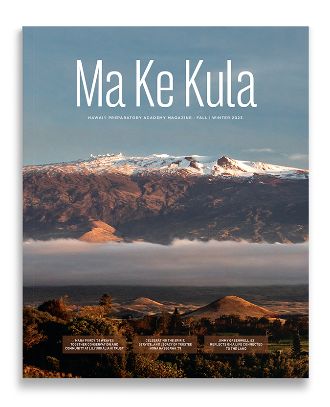 Ma Ke Kula is published twice a year for our HPA ‘ohana of alumni, parents, and friends here in Hawai‘i and around the world. Send questions, ideas, and feedback to the alumni office via alumni@hpa.edu. We invite and encourage all alumni to send their news via a class note.