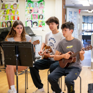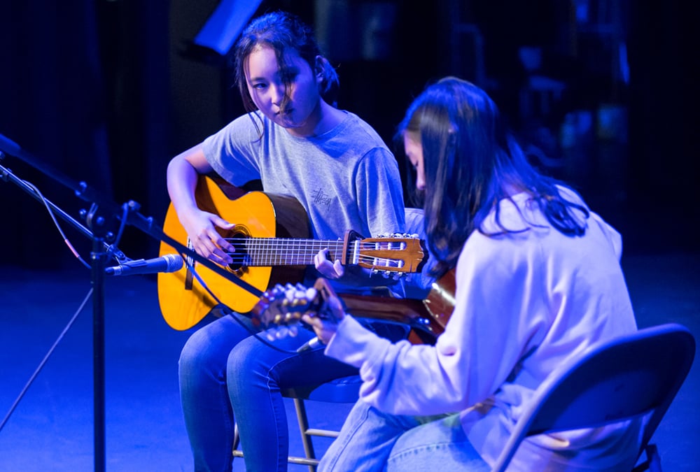 Our music program offers instruction in performance (instrumental and vocal), theory, and studio/production. For interested singers and instrumentalists, rehearsal and performance opportunities are available through Instrumental Ensemble, Evening Ensembles (Chamber Orchestra and Jazz Band), Fall Musical, and Chorus. Students seeking more academic or individualized pathways may also enroll in courses such as Songwriting & Lyricism, Musicianship, Acting through Song, and Studio Recording/Music Production. In addition, non-credit and student-led opportunities are available through our Lessons Program, music clubs (Rock Band and Glee Club), the Music Collaborative Co-Curricular, and the Fall Musical Pit Orchestra, which pairs HPA students and faculty with professional musicians from the Hawaiʻi Symphony and the Kamuela Philharmonic.