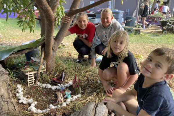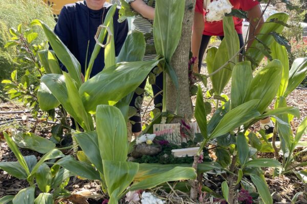 Started in 2021 in our Lower School, our Wā Pilina program is a dedicated time for students to connect across grade levels and learn from one another. Through both formal and informal opportunities, we cultivate an environment where relationships, collaboration, and shared learning are at the forefront. One of our exciting Wā Pilina sessions this week provided for connection between our 7th-grade students alongside our Kindergarten and 1st-grade classes, with the ultimate project of building fairy and menehune homes in our garden!