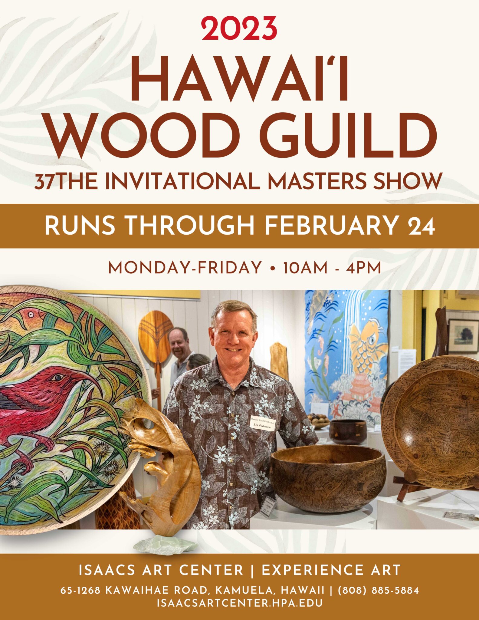 The Isaacs Art Center and the Hawaiʻi Wood Guild announce the opening of the 37th Invitational Masters Show on Friday, January 13, through Friday, February 24, 2023. The exhibit is free and open to the public, Monday through Friday, 10:00 am to 4:00 pm, including on Martin Luther King, Jr. Day and Presidents’ Day.