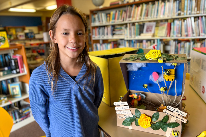 In Mrs. White’s 2nd-grade class, students are studying fiction stories in their literacy unit and were tasked with creating a diorama of their favorite fiction book. Here is one take on the book, The Many Adventures of Winnie The Pooh.