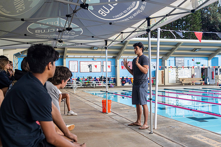 Athletic Excellence • HPA alum and swimming champion Kyle Katase ’11, knows a thing or two about what it takes to win. His team’s 200-medley relay time held the state record for ten years! The 100-yard breaststroke individual medalist returned to the Dowsett pool to prepare our swim team for tomorrow’s BIIF championship meet by sharing with his fellow Ka Makani what a confident and positive mindset can accomplish. GO KA MAKANI!! Good luck tomorrow!