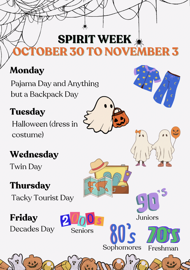 Don’t forget Monday, October 30 – Friday, November 3 is Spirit Week!