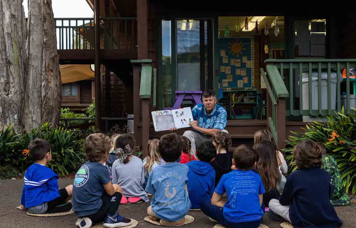 While read-alouds are an important component of our literacy curriculum through all grade levels K-5 — having a purposeful day to celebrate with surprise guest readers allowed us to highlight just how special and beneficial reading aloud truly is. In addition to sparking thoughtful conversations around a variety of themes such as sustainability, empathy, compassion, the power of one, sense of place, and so much more — reading aloud helps our keiki build vocabulary, models for them expression and fluency, supports their active listening skills, and inspires wonder and reflection in all of us. Moreover, reading aloud provides opportunity for connection with one another, promotes bonding between participants, and provides opportunity for social-emotional exploration and growth. Reading aloud is not simply an activity for the youngest among us, but a beneficial practice that can and should be continued throughout the years, a critical component in creating the foundation of joy and love for a path of lifelong learning. A super tool we can all reach for time and time again, the power of a book, indeed, the power of a read aloud, cannot be understated. Do you remember your favorite read aloud as a child? Ask your child about their current favorite!