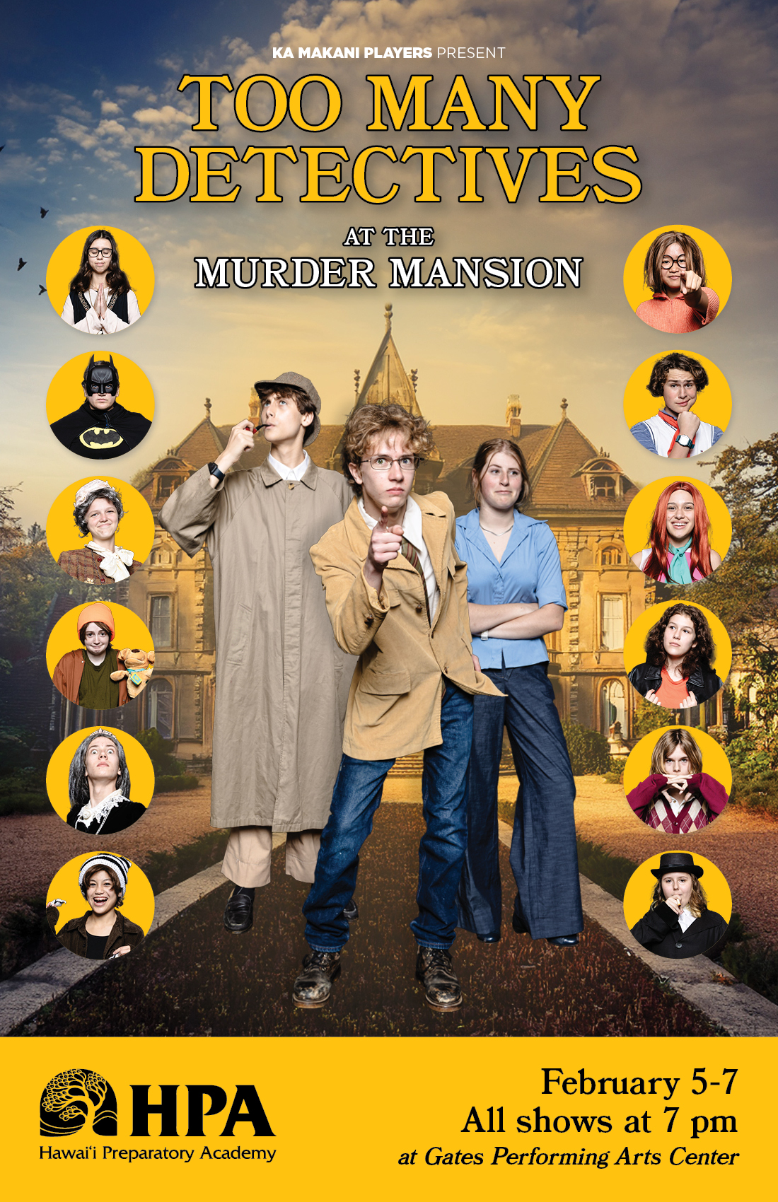 Join us in Ko Kākou Student Union on the Upper Campus from 5:15 to 6:30 pm TONIGHT, Friday, February 6, for pizza with our Head of School, Fred Wawner, before the opening night of Ka Makani Players’ performance of Too Many Detectives at the Murder Mansion. Bring the family for a slice and head over to the Gates Performing Arts Center for the 7:00 pm showing.
