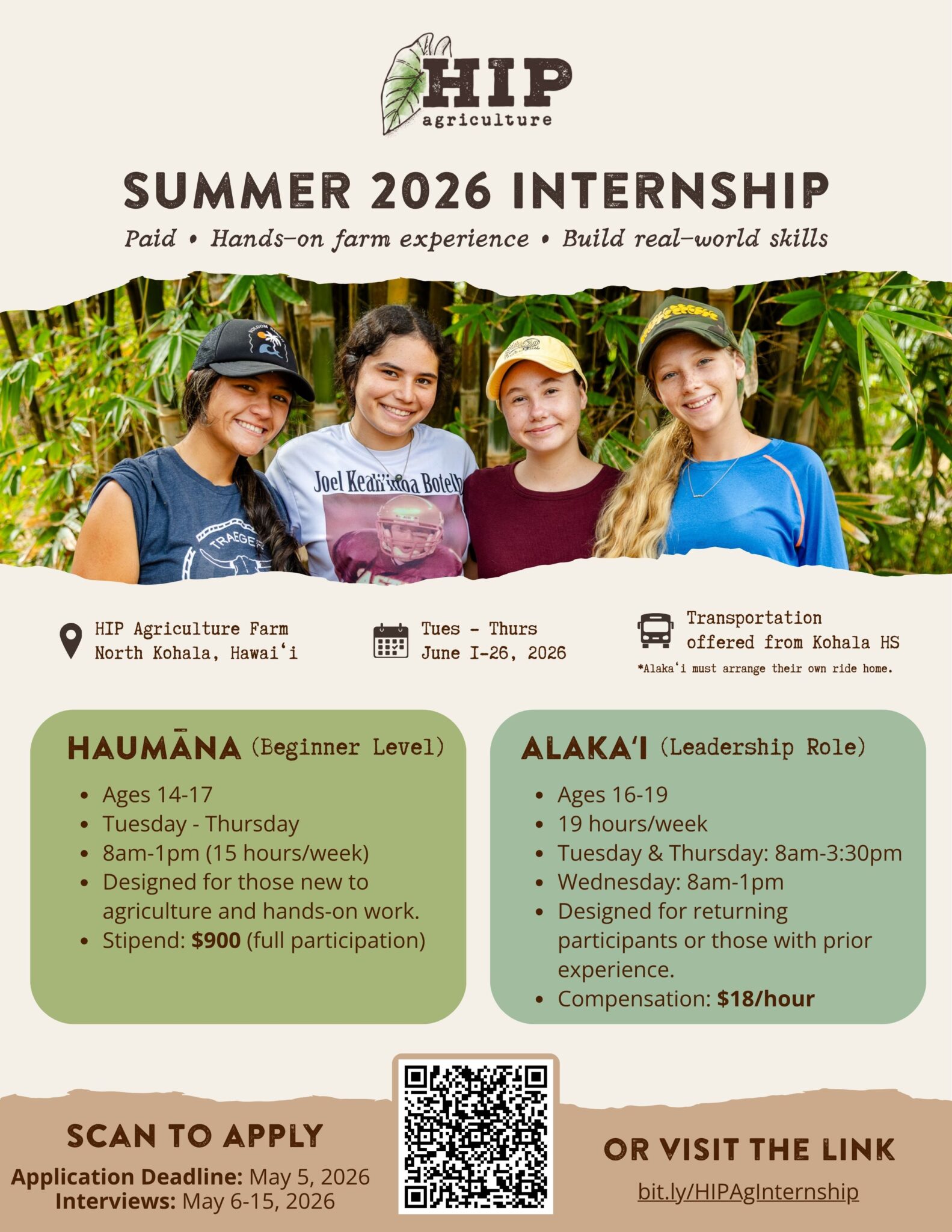 Following the presentations, we will hold a vote for the 2026-2027 ‘Ohana Association Board. If you are interested in joining the Board next year, please email ohana@hpa.edu or fill out this form. Mahalo!