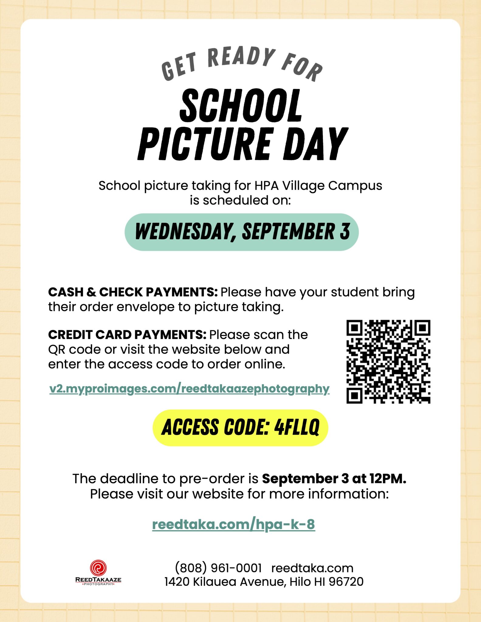 • Wednesday, September 3: School Picture Day