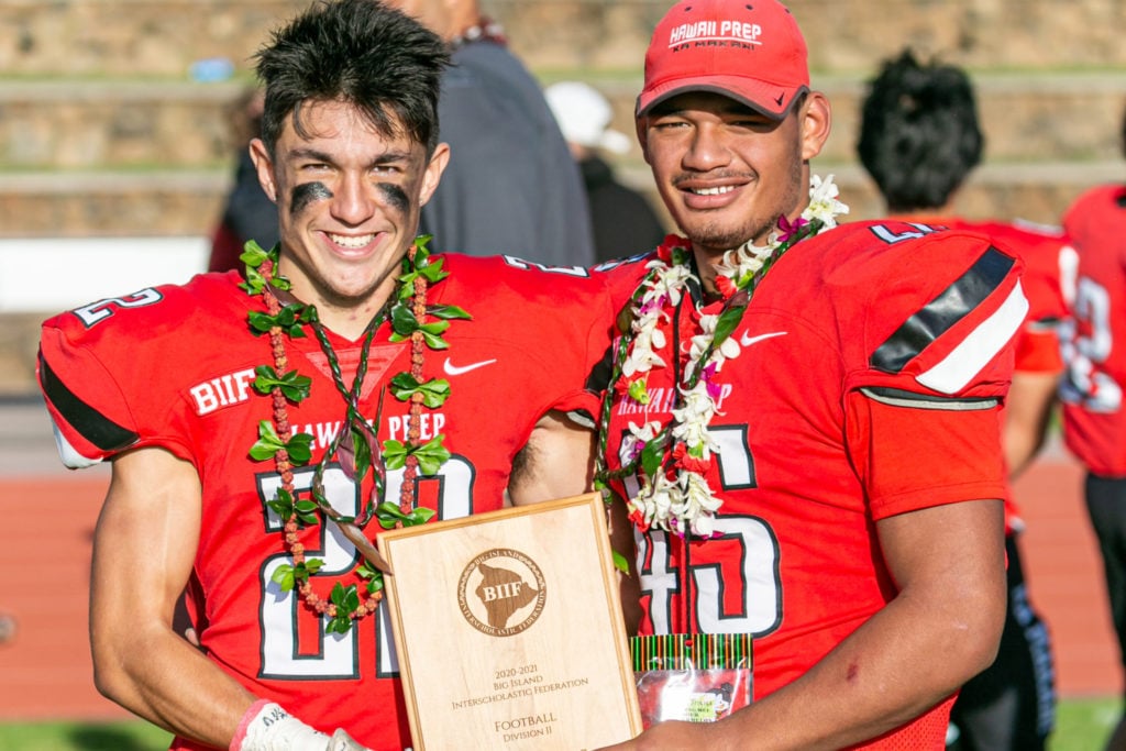 With just :02 seconds left on the clock, HPA’s first Big Island Interscholastic Federation football title in a decade came down to a kick. Ka Makani battled to a 0-0 draw in a defensive game against Kamehameha-Hawaii but were able to grind out one final drive behind the senior trio of Braeden Samura, Kamuela Gaughen, and Tain Lawson.
