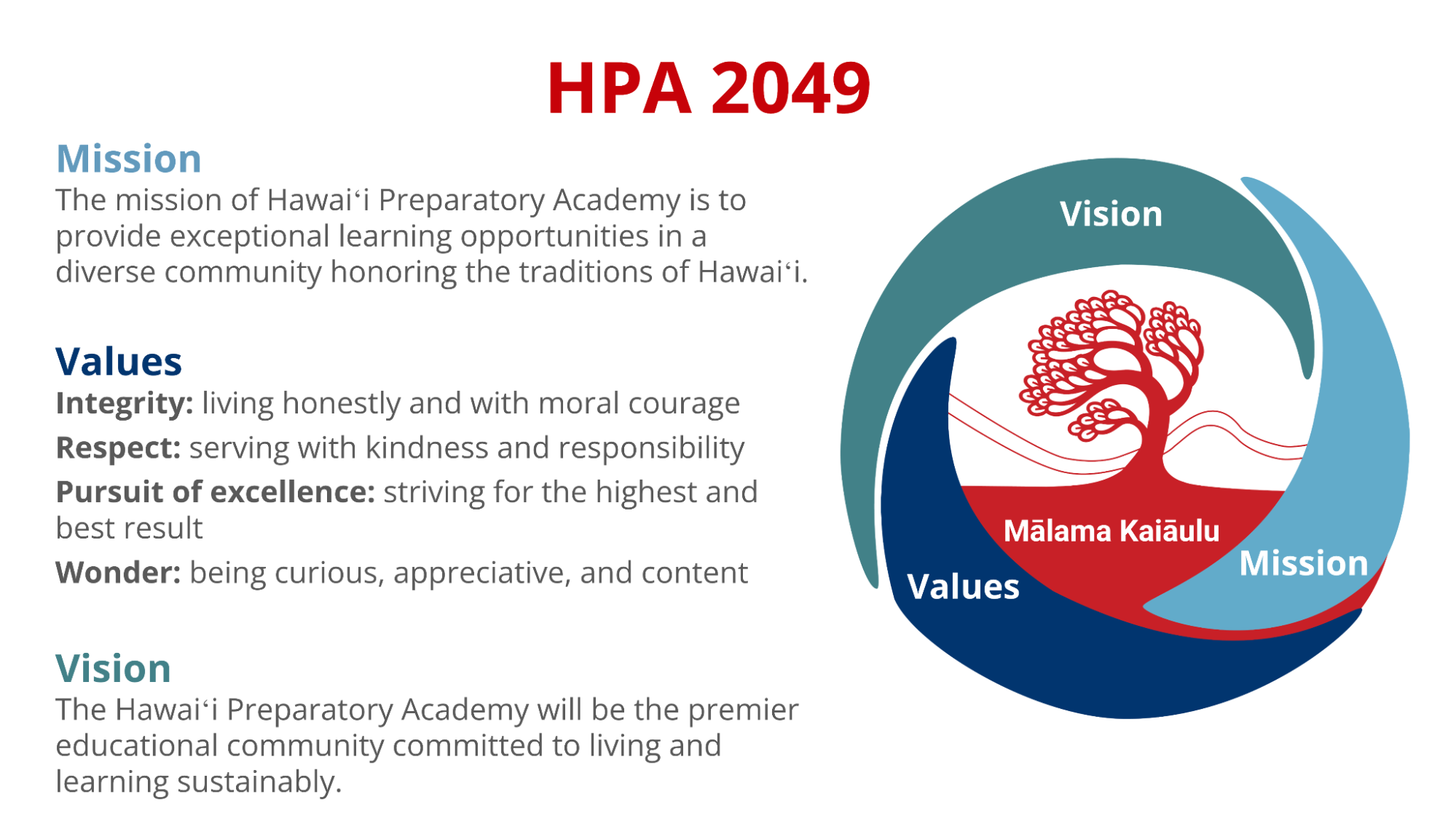 “The Hawaiʻi Preparatory Academy will be the premier educational community committed to living and learning sustainably.”