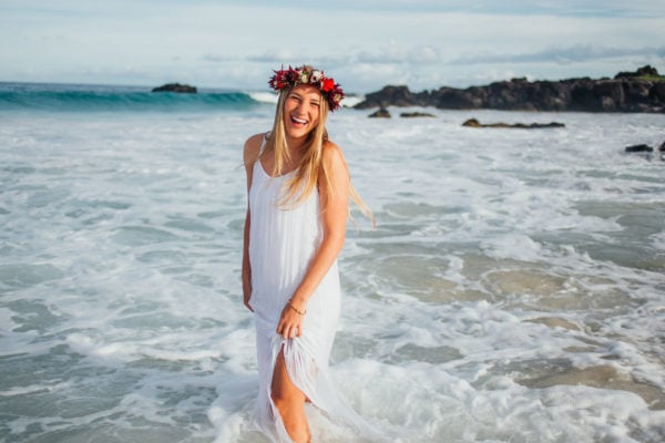 • On the weekends, you will probably find her in the water surfing and spearfishing, or playing volleyball or soccer with friends on the beach.